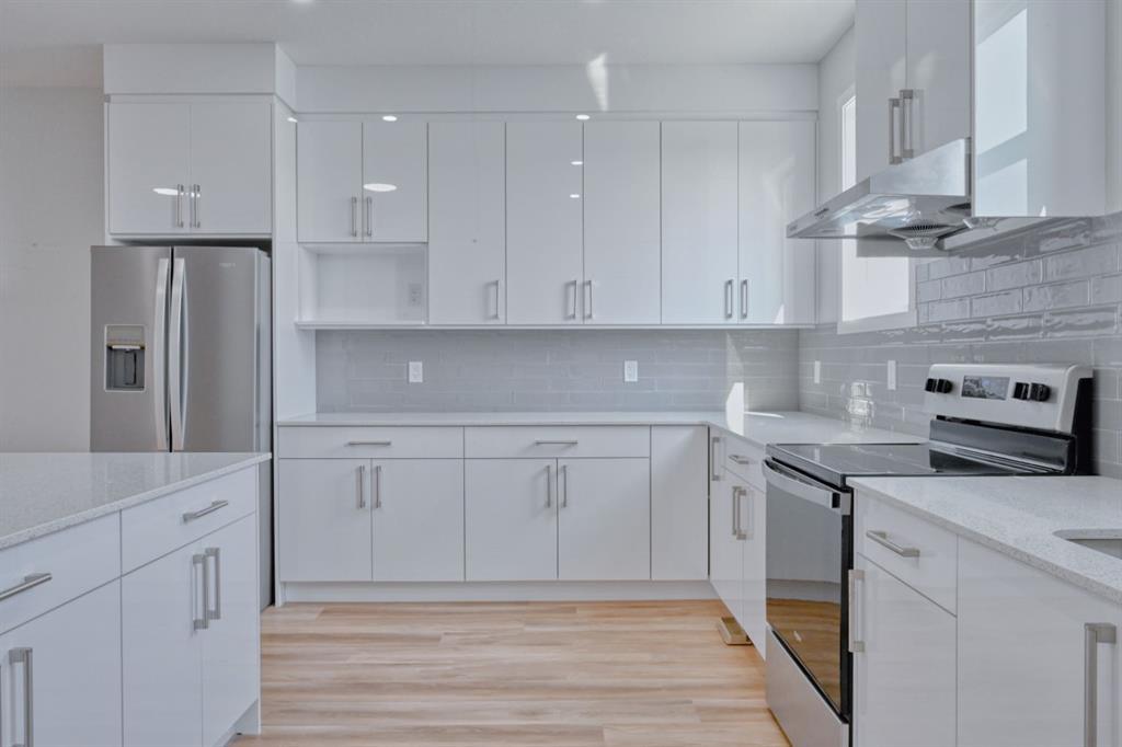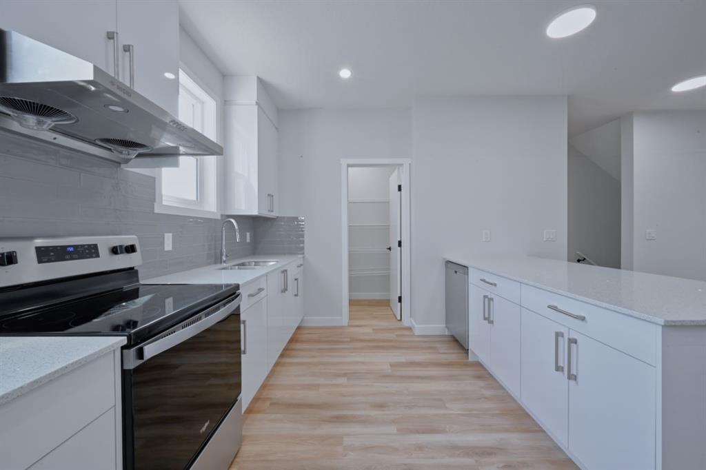 Dishwasher, Electric Stove, Range Hood, Refrigerator, Washer/Dryer