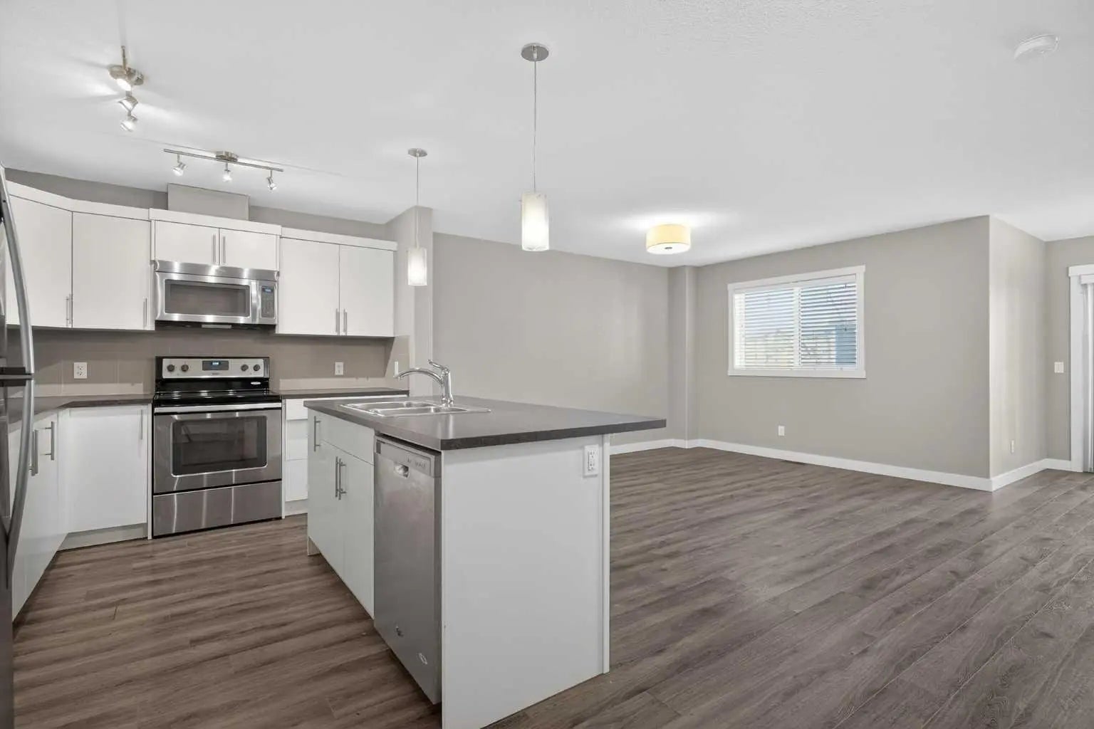 Dishwasher, Dryer, Electric Stove, Microwave, Refrigerator, Washer, Window Coverings